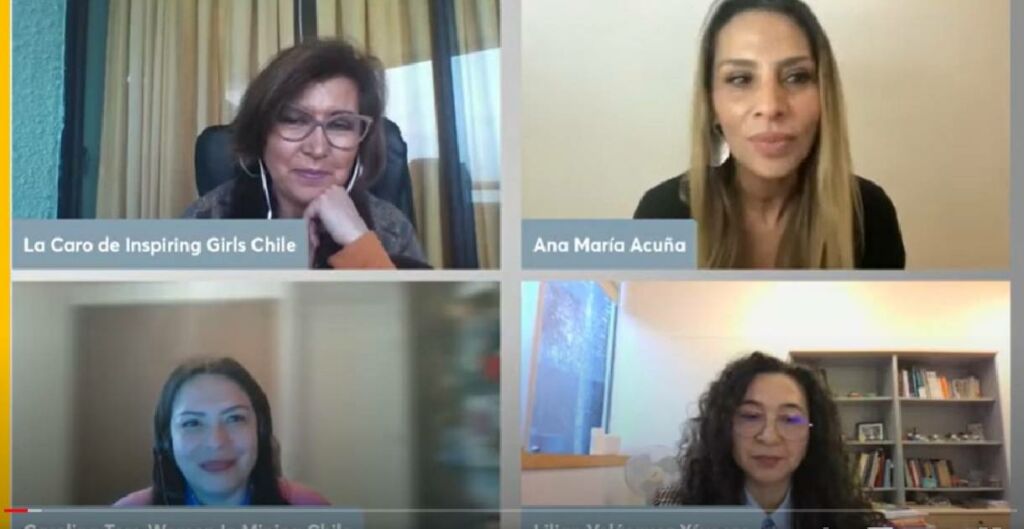 Moderada por nuestra profesora Ana María Acuña, psicóloga y gerenta general de Impactus OTEC, contó además con la participación de Carolina Toro, gerenta de Desarrollo de Negocios de Interops y líder núcleo RM de Women in Mining; Carolina Rojas Romero, administradora pública y directora de Vinculación Corporativa de Inspiring Girls Chile, y Lilian Velásquez, profesora asociada del Dpto. de Ingeniería de Minería UC, PhD. in Mineral Science, Murdoch University.