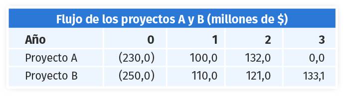 Podemos ver que el proyecto A tiene payback de 2 años, puesto que recién al año 2 se recupera la inversión:
